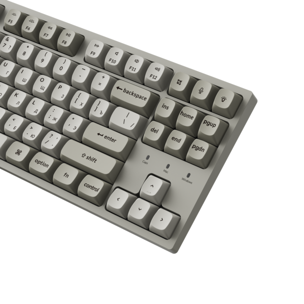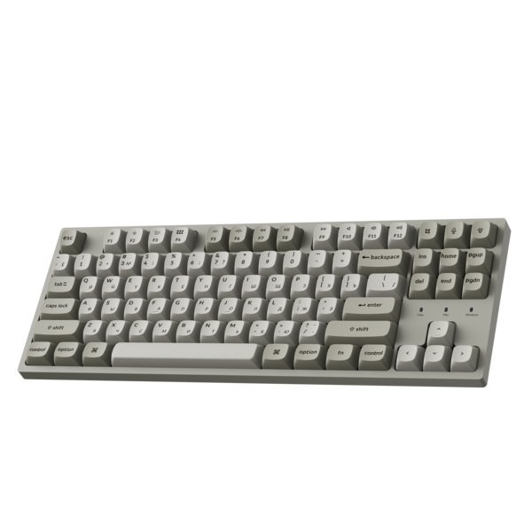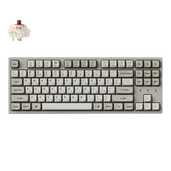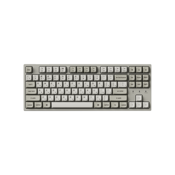 Классическая TKL (80%) механическая клавиатура Keychron C1 Pro 8K - проводное подключение, частота опроса 8K, 87 клавиш, ANSI, с поддержкой QMK/VIA, корпус из ABS пластика, Tray Mount, цвет Retro, переключатели Keychron Super Brown, горячая замена переключателей, PBT-кейкапы, OSA профиль, EN / RU - двойное литье (Double Shot), RGB подсветка (южные светодиоды), шумоизоляция (несколько слоев звукопоглощающей пены и слой силикона), размеры без клавиш 357 x 131 x (20 спереди – 29 сзади) мм, вес 830 г.