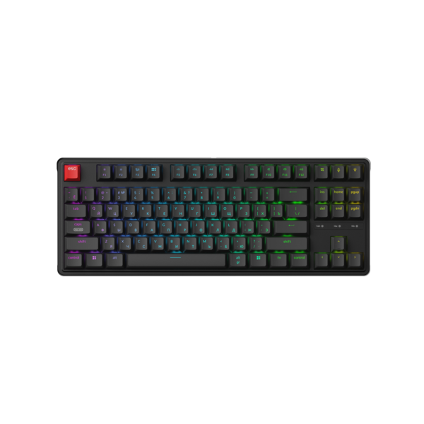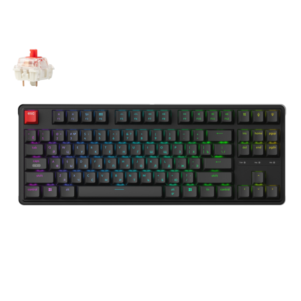 Классическая TKL (80%) механическая клавиатура Keychron C3 Pro 8K - проводное подключение, частота опроса 8K, 87 клавиш, ANSI, с поддержкой QMK/VIA, корпус из ABS пластика, Gasket Mount, цвет Black, переключатели Keychron Super Red, горячая замена переключателей, ABS-кейкапы со сквозной подсветкой символов, Cherry профиль, EN / RU - лазерная