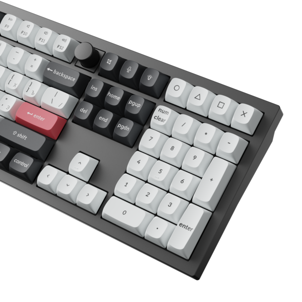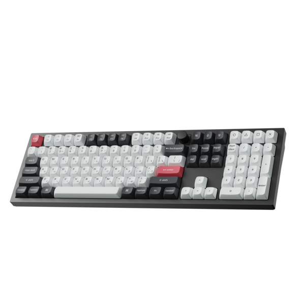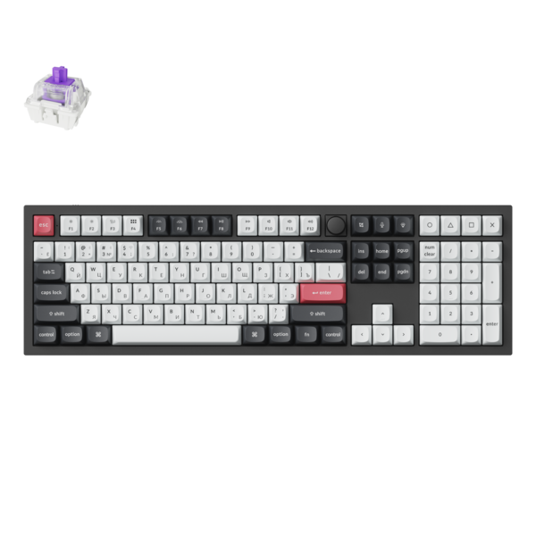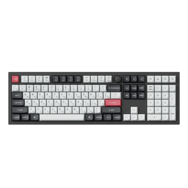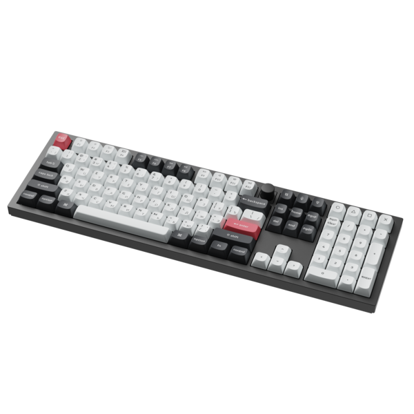 Полноразмерная (100%) механическая клавиатура Keychron Q6 HE - 3 типа подключения (Bluetooth; радиоканал 2,4 ГГц; провод), 108 клавиш, ANSI, с поддержкой QMK/VIA, корпус из алюминиевого сплава, Gasket Mount, цвет Carbon Black, магнитные переключатели Gateron Nebula, горячая замена переключателей, PBT-кейкапы OSA профиль, EN / RU - двойное литье (Double Shot), RGB подсветка, шумоизоляция, вращающаяся ручка, аккумулятор 4000 mAh, размеры без клавиш 446 x 137 x (20,6 спереди – 31,9 сзади) мм, вес 2178г.