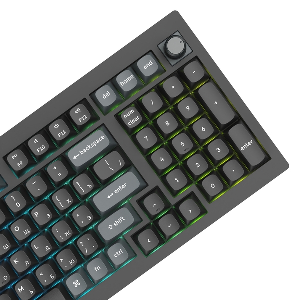 Особенности клавиатуры Gasket Mount, PBT-кейкапы OSA профиль, Винтовые стабилизаторы, Вращающаяся ручка, Настраиваемая RGB подсветка, Поддержка ZMK, Цифровой блок, Частота опроса 8000 Гц, Южные светодиоды