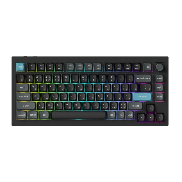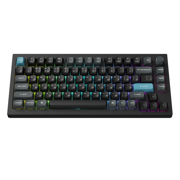 Компактная (75%) механическая клавиатура Keychron Q1 Ultra - 3 типа подключения (Bluetooth; радиоканал 2,4 ГГц; провод), 81 клавиша, частота опроса 8000 Гц, ANSI, поддержка ZMK, корпус из алюминиевого сплава, Gasket Mount, цвет Black, переключатели Keychron Silk POM Brown, горячая замена переключателей, PBT-кейкапы OSA профиль, EN/RU - двойное литье (Double Shot), RGB подсветка, южные светодиоды, шумоизоляция, стабилизаторы с винтовым креплением, вращающаяся ручка, аккумулятор 4000 mAh (до 660 часов работы при выключенной подсветке), размеры без клавиш 327,5 x 145 x (20,7 спереди – 31,8 сзади) мм, вес 1724 г.