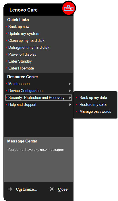 Какое ещё программное обеспечение предустановлено на ноутбуке? Из сторонних программных пакетов можно назвать Microsoft Office 2007 (пробная версия на 60 дней) и антивирус McAfee (также версия для ознакомления). Конечно, Lenovo предоставляет собственные утилиты. Основной, наверное, можно назвать Lenovo Care, которая предоставляет централизованный интерфейс для доступа к функциям всех остальных. Отсюда вы можете быстро настроить планы электропитания, провести резервное копирование, создать диски восстановления, восстановить состояние системы с контрольной точки. Также в утилите предоставлен доступ к системным сервисным функциям, таким как дефрагментация.