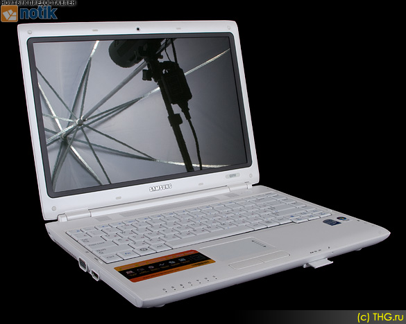 В Samsung Q310 установлен жёсткий диск среднего по современным меркам объёма. 250 Гбайт хватит на небольшую аудио/видеотеку, ну а для рабочих нужд такого объёма будет более чем достаточно. Оптический привод вполне стандартный для современных ноутбуков, предоставляет возможность чтения/записи CD и DVD дисков, в том числе и двухслойных. Также поддерживается технология LightScribe, которая позволит наносить на специализированные "болванки" изображения в оттенках серого. Если же вы захотите наносить цветные изображения, тогда придётся сменить прошивку привода на более свежую и приобрести "болванки", позволяющие получать цветные отпечатки. Но, как известно редакции THG, такие "болванки" пока практически недоступны для пользователя.
