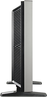 Дизайн панели сугубо утилитарный, что правильно, так как внимание должно привлекать только то, что она показывает. Относительно узкая фронтальная рамка (на взгляд, одинаковая по ширине) изготовлена из пластика с темно-серым матовым серебристым покрытием, а задняя панель — черный матовый пластик. В правом нижнем углу расположены: датчик освещенности, индикатор состояния (неярко светится зеленым при работе, мигает зеленым в спящем режиме и горит желтым в ждущем режиме, когда панель выключена с пульта или кнопкой на корпусе) и ИК-приемник.