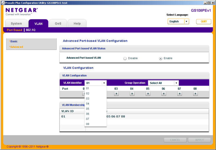 Вкладка VLAN содержит два подраздела: Port Based и 802.1Q, позволяющие управлять принадлежностью устройств к различным VLAN на основе портов или тэгов протокола 802.1q. Стоит заметить, что подраздел 802.1Q также позволяет относить те или иные устройства к определённой виртуальной сети на основе порта коммутатора. Каждый из подразделов позволяет произвести соответствующую настройку в простом и расширенном режимах.