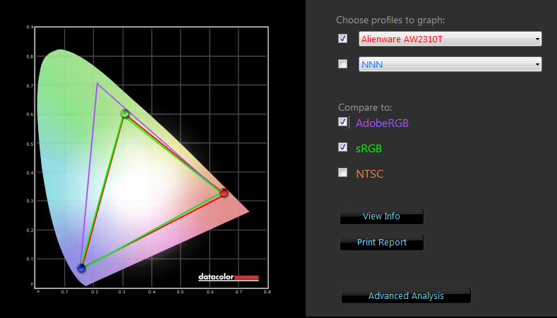 Alienware OptX AW2310, после калибровки — цветовой охват