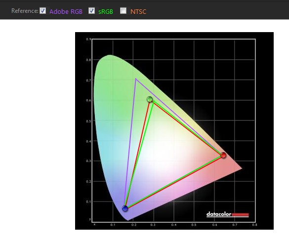 Цветовой охват после калибровки более плотно «лег» на цветовой треугольник sRGB.