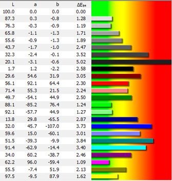 Alienware OptX AW2310, пользовательские настройки — точность передачи отдельных оттенков, ΔE