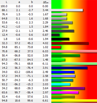 Alienware OptX AW2310, режим «Теплый» — точность передачи отдельных оттенков, ΔE94