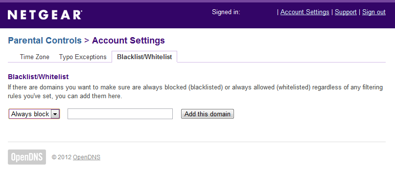 Помимо OpenDNS есть и традиционная система блокировки «неугодных» ресурсов. Можно создавать белые и чёрные списки ключевых слов для доменных имён, причём для одного из локальных клиентов эти правила могут не действовать. Аналогичные списки можно создавать для заданных диапазонов портов. При этом блокировка или отсутствие таковой можно назначить для одного локального IP-адреса, диапазона IP-адресов или для всех клиентов сразу.