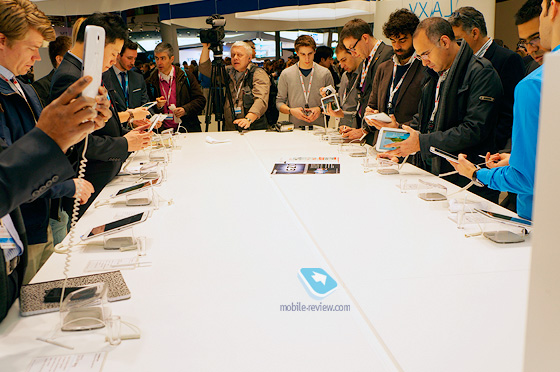 Перед началом обзора я бы хотел похвалить организаторов стенда Samsung за огромное число образцов, посмотрите на эти фотографии, таких стендов было около восьми (при этом у Sony на стенде было доступно всего три планшета).