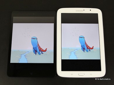 Мне больше понравился экран у маленького планшета Apple: корректнее передаются цвета, больше углы обзора. В то же время у него и совсем маленькая рамка вокруг дисплея, устройство выглядит симпатичнее.