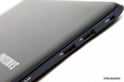 Для компактных размеров ультрабук оснащен прямо-таки выдающимся числом разъемов и портов. Тут есть полноценный HDMI-порт, miniVGA-разъем, гигабитный RJ-45, SD-слот, 3,5 мм разъем для наушников и три USB-порта! Один из них USB 3.0, он расположен слева, а справа пара менее скоростных USB 2.0.