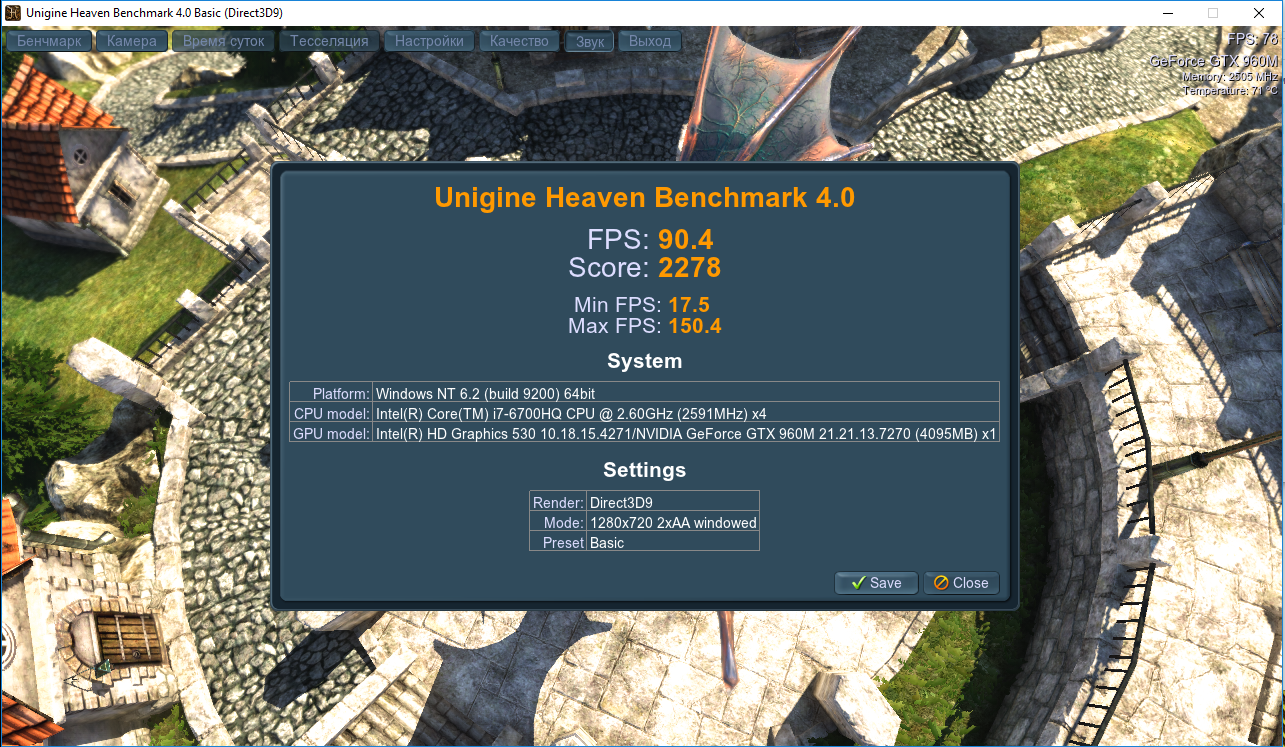 В принципе, связка видеокарты GeForce GTX 960M и процессора Intel Core i7 6700HQ не являются эксклюзивом и, вкупе с достаточно шустрой дисковой подсистемой и внушительным объемом оперативной памяти, дают вполне приемлемый результат — «твердую четверку», если можно так выразиться, а в полку одноклассников (по железу) — и все 5 баллов.