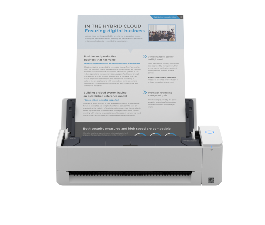 iX1300 – это самый компактный сканер в линейке ScanSnap. Благодаря удобному и компактному U-образному тракту подачи документов, устройство занимает минимум места и будет оптимальным для любого рабочего пространства.